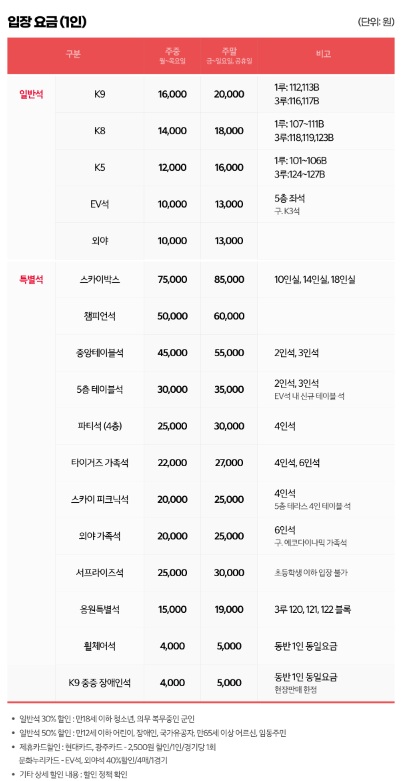 | 구단명 | 로고 | 홈구장 | 티켓 예매 | |