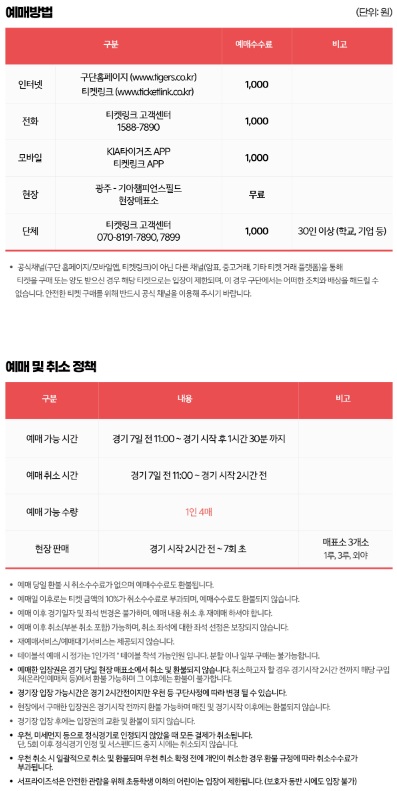 1. 구단별 경기 일정 및 티켓 예매